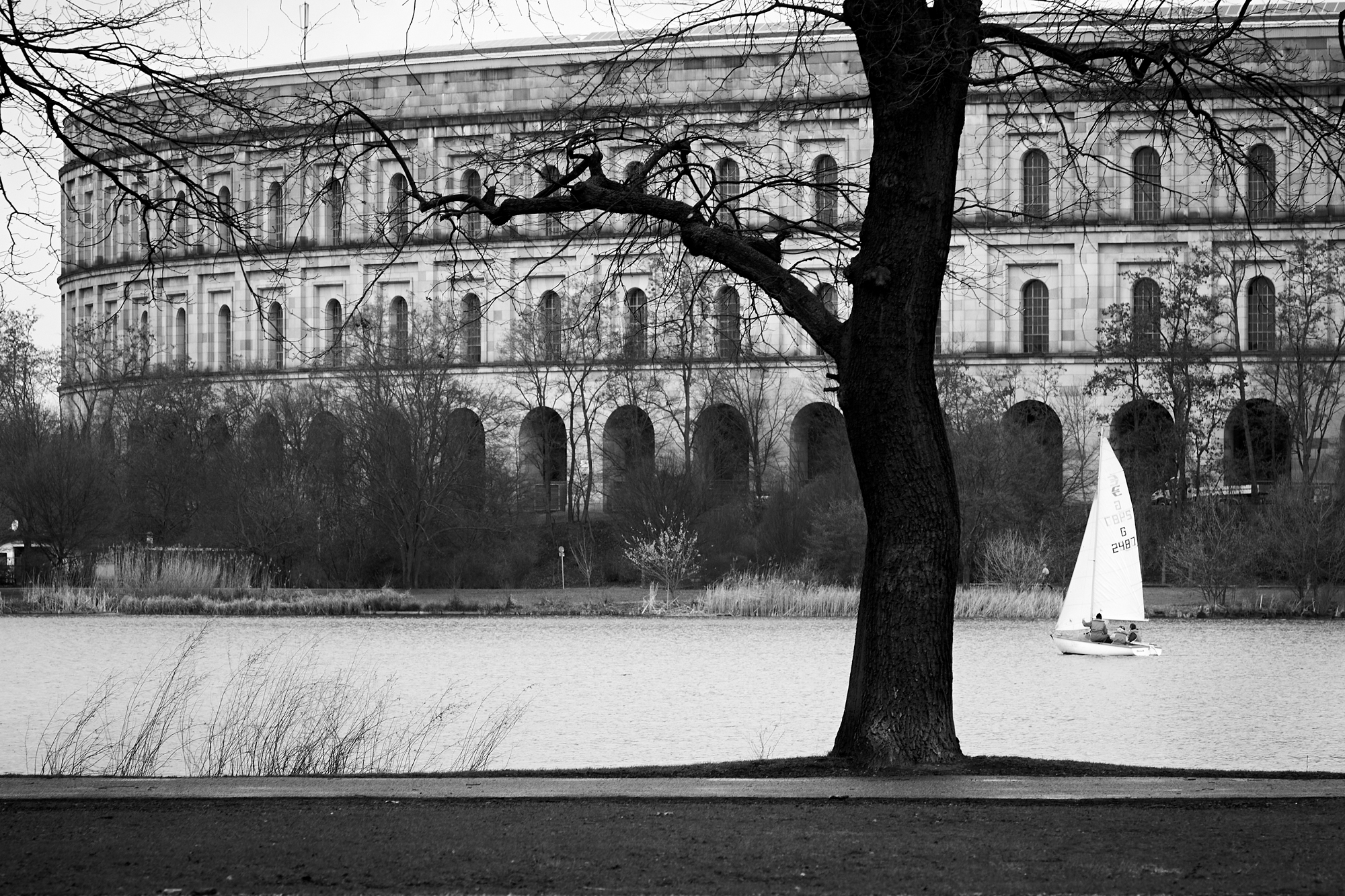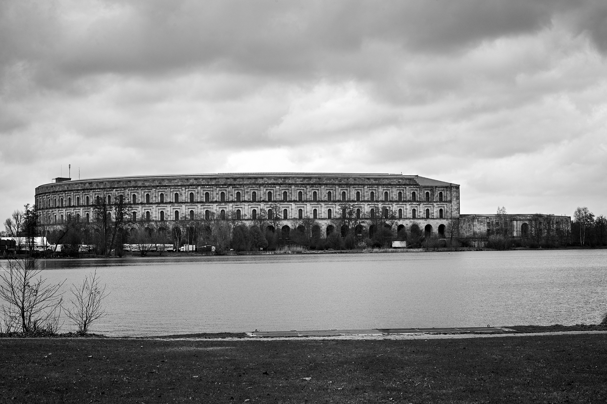 Although it was never completed, the Congress Hall gives a sense of the dimensions of Nazi Party Rally architecture. Popular leisure facilities like a public swimming pool and the 1906 lighthouse were demolished to make room. Part of the Dutzendteich lake was drained. The foundations for the monumental structure were extremely complex and costly. Architect Albert Speer had designed the Great Avenue to be the central axis of the Party Rally Grounds. It is 60 meters wide and was to be 2 kilometers long. Between 1935 and 1939, 1.5 kilometers of the project were completed – paved with 60,000 granite slabs.